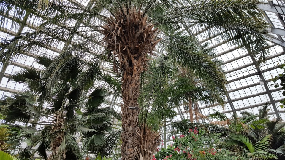 This is the Scheelea Palm. It “dates back to 1926, when it was sprouted from a seed collected on an exploring expedition to Brazil led by Chicago’s Field Museum of Natural History. The tree has survived two major room renovations and is still going strong.”